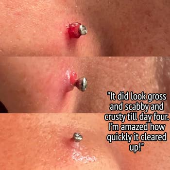 BuzzFeed Shopping contributor Jordan Grigsby has used this and here's what she has to say: "Oh! BTW, I bought this. Last year I got a dermal piercing on my chest and since literally just about every piercing I've ever gotten has grown a keloid on it, I should have known my dermal would eventually, too. I got the piercing in February of 2023 and around May I noticed a nasty, stubborn little bump making a guest appearance on my piercing. 🙄 I had written about this stuff a few times so the light bulb went off and I immediately bought it. I consistently used it twice a day and it gradually disappeared, literally like magic within a month. Keloids are a serious nightmare and I'm so glad that I found this stuff. I even *accidentally* ripped it out in November and immediately grabbed this to prevent a keloid from forming cuz I just knew it'd get infected. To my surprise, no keloid, nada. This stuff always gets rid of keloids for me, it's such a life saver. You do have to be patient and consistent, this is NOT an overnight miracle but it's worth it. I also suggest that you continue to use it for like another week or two even after your keloid goes away juuust in case it tries to sneak back into your life."