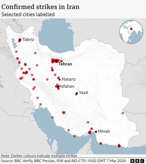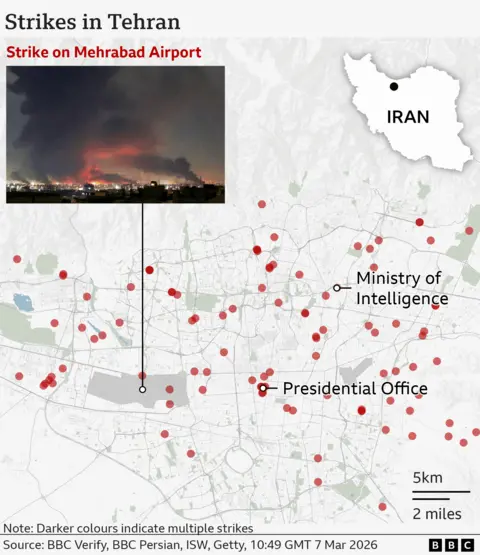 BBC Verify has so far confirmed visual evidence of more than 80 attacks across the whole of Iran, including over 40 strikes in Tehran