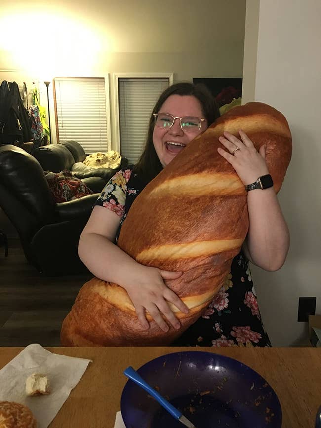 Promising review: "I bought this delicious bread morsel to cheer up a friend. It was perfect; she really kneaded it. She uses it for cuddling and sleeping. This yummy bread cake doesn’t feel crummy at all; it’s soft. It was the yeast I could do. If your friend loves bread and they're going through a tough time, you butter get this." —Nora Lee Majors