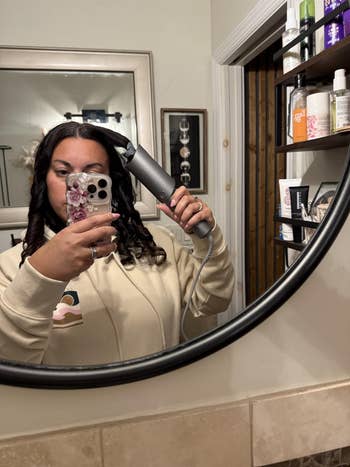 Promising review: "Surprised at how good it works and so easy to use. I bought it for my young daughter who likes to do hair.. I was worried about her getting her hair tangled up but that has never happened. Makes curling your hair so fast and easy. It does get very hot- it has an automatic noise for when to remove curl, but it gets so hot we remove our hair a lot sooner. She does her own hair all the time now. Great price, great item! She is 10 and can use it all by herself." —Kennedy Brooke