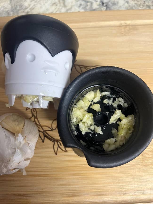 Promising review: "Definitely worth what I paid. It's so cute, I leave it out as a display piece between uses. It's super lightweight and easy to twist, even with my uncooperative hands. It saves so much time when I need to crush/chop garlic. I also like that it doesn't have any sharp components, so it's easy and safe to clean." —Monica phoebe