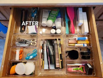 We hope you love our recommendations! While every product is independently chosen by our editors, BuzzFeed and our publishing partners may collect a share of sales or other compensation from the links on this page. You can read more about how our affiliate partnerships work in our Editorial Standards & Ethics Guide. Prepare for every aspect of your life to be *very* pristine. My colleague Maitland Quitmeyer says: "I have this organizer and I love it! It holds a good amount of stuff, keeps the dust at bay, and looks much neater than my old organizer, which just had slots with no lid. Because I regularly try a ton of beauty products, I paired it with a set of stacking drawers from another seller, which aren't a perfect match for the shade of green, but look good together on my vanity!" Promising review: "Product arrived quickly and was well packaged. I love how this organizes my beauty products so it’s not all out in the open on my counter anymore. The glass brush holder is the best part, it looks so expensive! Highly satisfied with this purchase!" —SGD1978 Get it from Amazon for $54.99 (available in four colors/styles). The set comes with one six-cell bin (for scarves and ties), an eight-cell bin (for underwear, briefs, and ties), a seven-cell bin for bras, and a 24-cell bin for socks. Promising review: "No matter how neatly I fold my bras and underwear, they always seem to become a big jumble in the drawer. These organizers are perfect for keeping everything in place, and you won't forget about those items you own that end up buried at the back." —M. Hanson Get a set of four from Amazon for $15.97+ (available in seven colors and as a set of seven). Some reviewers use it to organize their bathroom products too! Promising review: "This thing is [well made], it's easy to put together, and I love it! It cleared so much room in my kitchen pantry and makes it so much easier to organize! LOVE IT! Definitely worth the $$$." —David A. Payne Get it from Amazon for $36.99+ (available in five sizes and in white or black). Promising review: "I am so happy I found this little gem of a product. I got one for myself and one for a friend who I was helping get organized. The little pockets are great and hold more than you think they will. I love that the front of the pockets is a clear view, so you can see everything that is in the pocket. The product is very sturdy and really super easy to put together and hang up on the doors." —MM1986 Get the six-shelf version from Amazon for $19.97 (available in seven colors and a four-shelf version). These dividers are designed to fit on shelves up to 7/8" thick. Promising review: "I love these! They fit snugly over my shelf, so they don't shift or move around. I have a lot of handbags, and it's been a mess on my closet shelf for the ones that are floppy. I have limited closet space in a small home, so my choices of where/how to store them are limited. This was the perfect solution. I plan on buying more when I get around to re-arranging sweaters on shelves." —BarbraGenie Get a set of two from Amazon for $17.99. YouCopia is a woman-owned small biz that makes ingenious home and kitchen storage solutions. Promising review: "These are a dream come true. So many of these other lazy Susans are just lazy. This one takes it up ten notches. It's the valedictorian of Susans. This one spins with ease, is so simple to clean, looks great, AND has removable sections. WHAT. Those other ones just don't have that forward thinking. I've bought these for home — my spices, my snacks, my makeup. I even bought these for my work and blew people's mind. They had no idea that we could save so much space in our cabinets. They loved them." —Jg Get it from Amazon for $23.37+ (available with three or six compartments and in another style). Promising review: "These are actually cuter than I expected! They are a tad smaller than some I've seen, but they actually looked great and can hold plenty of Q-tips and cotton balls in the spare bathrooms. I have mine on a serving tray with a candle and vase, and they look great without taking up too much space!" —tara savage Get a set of four jars from Amazon for $9.98 (also available in sets of two or three). And grab that sleek cable sleeve (aka a wire cover) while you're at it! Promising reviews: "I've been searching for something to not only hide the cord mess but protect them from my munch monster of a cat. This box in addition to cable straps and cable wrap has solved my cable management like magic! I highly recommend this product." —Lauryn "Seriously where has this been all my life??? Highly recommend. Excellent cord management soulmate (I meant to type solution and it autocorrected to soulmate, however I think that’s accurate LOL.) Just get it. Won’t regret." —April Olsen Get it from Amazon for $22.99+ (available in two sizes and three colors). No tools required! It comes with a two-way clamping design that works on both horizontal and vertical surfaces. It's compatible with desks that are up to 3.1 inches thick. BedShelfie is a POC-owned small business that focuses on space-saving solutions for the home. Promising review: "First impression of the CarryUp, the build of it is solid and felt heavy. The weight of it made me confident it will hold up well and last me a long time. Overall setup was a breeze. No tools needed at all. One sentence that sums up this product for me ... Simple and effective!!!!! If you have messy cords underneath your desk then don't think, just buy this product." —Eddie Sadiwa Get it from Amazon for $24.99 (available in dark gray or cream). Promising review: "What an awesome organizer set. I used half of the containers from the set to organize a drawer. There is enough to organize two drawers. I am very impressed with the results. Non-slip feet are a great thoughtful feature. If you are still thinking, buy it!" —A. Syn Get the 25-piece set from Amazon for $17.99+ (available in 10 colors). It come