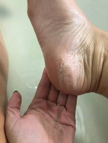 Promising review: "Saw someone review this on TikTok and bought it. The satisfaction of all the dead skin that comes off is unmatched. Makes my skin so soft and shiny" —Kallie