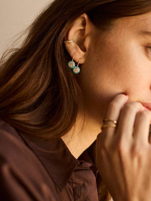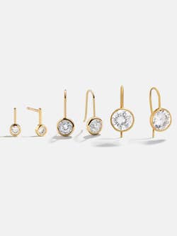 Price: $62+ (available in gold bezel, silver bezel, or semi-precious bezels, three stone sizes, and sets of 3)