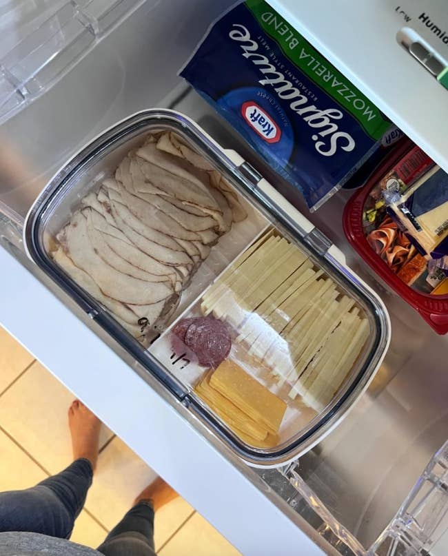 Promising review: "I bought this because I have the outlandish idea that my refrigerator will look just like those on TikTok, but I am pleasantly surprised to find that it keeps my cold cuts fresher for much longer than expected. It's large enough to hold a pound or more of cold cuts or cheese, which is a bonus. The sealing technology is superb and strong. At one point, I almost could not open the container due to the seal being so airtight. Not only does this product look good in my fridge, but it is saving me money, so definitely a win-win for me." —IrishEyes