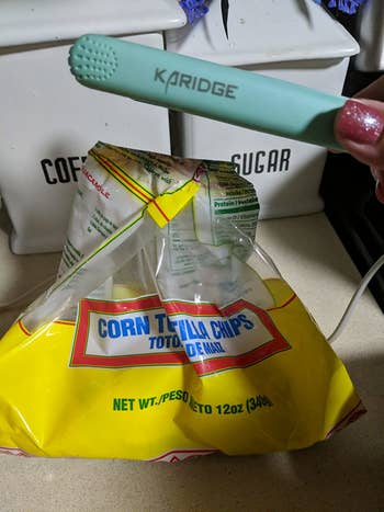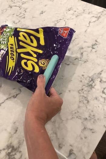 Promising review: "Love this little bag sealer. I have kids, so I constantly have open bags of chips that go stale because they are left open on the counter. With this, I can reseal them and keep them fresh. I also do it with my babies teething snacks so I can stop throwing them away. With them being $8 a piece I ended up ordering some for Christmas next year for stocking stuffers for family members. And it doesn’t get extremely hot so I can trust my 10-year-old to do it as well :)" —Katrina