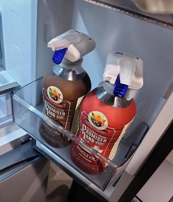Promising review: "This has made such a difference in my fridge. I can easily group things together so I don't get three open ketchup bottles. It's easy to find sandwich fixings! Fresh food is in the front and can get used before it gets buried or shoved to the back to die. These have made like easier." —Brent Allred