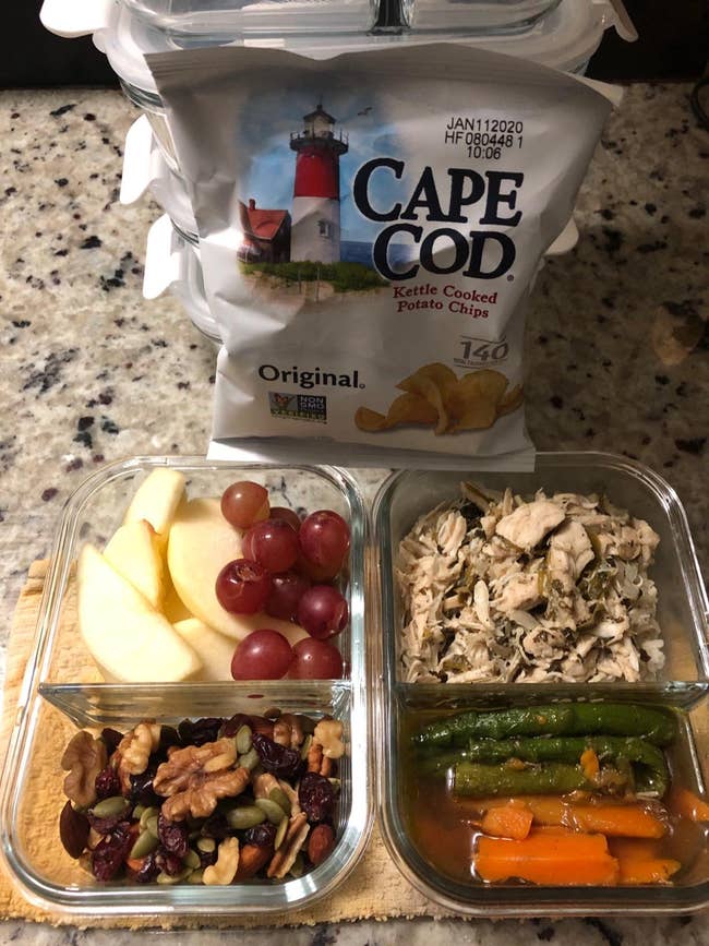 Promising review: "I had planned to do a full charcuterie board on this tray, but once I pulled everything out, I realized I had way too much. So I used it as a prep place for crackers. I was able to set this up hours ahead of time, put the lid on it to keep them fresh, and nothing rolled away because of the little lip around the edge. The crackers stayed fresh until they were gone — four days! My family loves it too! We’re bringing it back out for New Year’s Eve for our family party." —GrecianErn