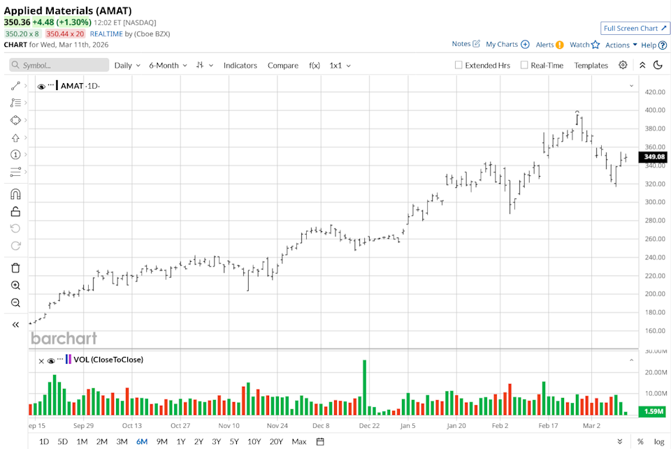 Applied Materials (AMAT) and Micron Technology (MU) have partnered to develop next-generation memory chips specifically for artificial intelligence. This collaboration focuses on DRAM and High-Bandwidth Memory (HBM) to meet the massive speed and power requirements of modern AI systems. By combining Applied Materials' materials engineering with Micron's memory expertise, the companies aim to create a "lab-to-fab" pipeline that moves new designs from research to mass production faster. The partnership centers on two major U.S. hubs: Applied Materials' new $5 billion EPIC Center in Silicon Valley and Micron’s innovation center in Boise, Idaho. A key focus is advanced packaging, a technique that stacks chip components to increase performance while reducing energy consumption. As AI models grow more complex, this alliance ensures that the underlying hardware can scale efficiently, solidifying the U.S. as a leader in the critical semiconductor innovation needed to unlock AI’s full potential. 2 Ways to Profit from a Fading Tesla Stock Price Cathie Wood Bets $19 Million on 5 Beaten-Down Stocks Dear Oklo Stock Fans, Mark Your Calendars for March 17 Our exclusive Barchart Brief newsletter is your FREE midday guide to what's moving stocks, sectors, and investor sentiment - delivered right when you need the info most. Subscribe today! Applied Materials is a leading provider of equipment, services, and software for manufacturing semiconductors, displays, and solar products. It supplies critical tools for chip fabrication, like deposition, etching, and inspection systems, powering virtually every new semiconductor used in electronics, AI, smartphones, and high-performance computing. Founded in 1967 and headquartered in Santa Clara, California, USA, Applied Materials operates globally with facilities, R&D, and sales in over 100 countries. Applied Materials has demonstrated explosive growth over the last year, fueled by the accelerating demand for artificial intelligence and high-bandwidth memory. The stock has climbed an impressive 138% over the past 52 weeks, after hitting a one-year high of $395.95. Short-term indicators show some recent volatility, as the stock experienced a 2% drop over a five-day period but has since seen a 3% rise over the last month, with investors weighing record earnings against geopolitical risks. Applied Materials delivered a solid performance for Q1 2026, posting $7.01 billion in revenue and a non-GAAP EPS of $2.38. Both figures exceeded analyst estimates of $6.87 billion and $2.21, respectively, driven largely by record-breaking DRAM revenue and an 11% surge in AI-related demand. The company's financial health remains exceptional, with non-GAAP gross margins increasing to 49.1% and a substantial 91% year-over-year (YoY) rise in free cash flow to $1.04 billion. Operating cash flow reached $1.69 billion, allowing the firm to return $702 million to shareholders through buybacks and dividends while maintaining a strong cash position. Looking ahead, management issued a bullish Q2 forecast with a revenue midpoint of $7.65 billion and EPS of $2.64. For the full calendar year, Applied Materials expects its semiconductor equipment business to grow by more than 20%, fueled by the global transition toward 2nm chips and advanced AI memory architectures. Micron Technology is a global leader in innovative memory and storage solutions, specializing in DRAM and NAND flash products. As the only major U.S.-based manufacturer of computer memory, Micron’s technology is the backbone of the modern data economy, powering everything from massive AI data centers to mobile devices and automotive systems. Founded in 1978 in a dental office basement in Boise, Idaho, Micron has grown from a small design firm into a semiconductor powerhouse with its headquarters still in Boise. Micron has seen an extraordinary rally, surging over 371% in the last 52 weeks. The stock has experienced recent five-day volatility with a 5% gain; its long-term momentum remains unmatched, boasting a 179% return over the last six months. This performance significantly outpaces the S&P 500 Information Technology Index, which rose roughly 25% in the same period, reflecting its "top-pick" status in the AI sector. For the first quarter of fiscal 2026, Micron reported record-breaking revenue of $13.64 billion, far exceeding the $12.83 billion expected by analysts. The company posted a non-GAAP EPS of $4.78, crushing estimates of $3.94. This success was driven by a 69% YoY jump in DRAM sales as AI demand for high-bandwidth memory intensified. Financial health reached new heights with a non-GAAP gross margin of 56.8% and a record $3.9 billion in free cash flow. Micron ended the quarter with $12 billion in cash and investments and paid out $0.115 per share in dividends. Looking forward, Micron provided a bullish Q2 2026 outlook, forecasting revenue of $18.70 billion and EPS of $8.42, with management noting that their entire 2026 HBM supply is already sold out. Applied Materials currently presents the more attractive entry point from a valuation perspective, as it maintains a clear 15% upside to its consensus price target of $401.47. With 25 "Strong Buy" ratings, four “Moderate Buy” ratings, and eight “Hold” ratings. AMAT serves as a stable "picks and shovels" play, providing the essential equipment that makes the AI revolution possible without the extreme price premiums currently seen in direct chip manufacturers. On the other hand, Micron Technology remains the high-octane growth engine of the pair, backed by an overwhelming 32 "Strong Buy" ratings from analysts. MU stock is currently trading 14% over its mean price target of $358.30. Micron offers direct exposure to the AI hardware surge, while Applied Materials offers a more measured, value-oriented path to profiting from the same technological shift. On the date of publication, Ruchi Gupta did not have (either directly or indirectly) positions in any of the securitie