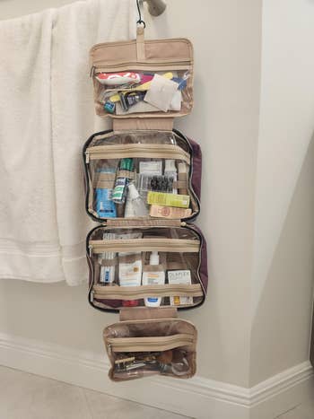 We hope you love our recommendations! While every product is independently chosen by our editors, BuzzFeed and our publishing partners may collect a share of sales or other compensation from the links on this page. You can read more about how our affiliate partnerships work in our Editorial Standards & Ethics Guide. Including face and body SPFs, because those are non-negotiable, folks! ☀️ Spring break is right around the corner, and if you've got a trip planned, *now* is the time to make sure you're prepared — not the night before you depart. 🙃 Ahead, we've tracked down the essentials reviewers swear by, from anti-bobblehead neck pillows and nausea relief inhalers to under-seat carry-on bags and the Mary Poppins of toiletry bags. Promising reviews: "I saw this on TikTok and purchased it for my trip! Got back home and used it in my own bathroom. I love it that much! Best Amazon purchase I’ve ever made!" —Amazon Customer "WILL NEVER TRAVEL WITHOUT IT. I am mad that I didn’t purchase this sooner. I was able to fit the toiletries for my entire family into this easily. The hook makes the items easily accessible, especially when switching hotels/houses and traveling frequently. I would purchase this again!" —Elisa D Get it from Amazon for $12.99+ (available in two sizes and 15 colors). This contraption provides 360-degree support thanks to a wraparound design and clips that connect it to your seat's headrest. Promising review: "Just took a 15-hour flight with this travel pillow, and this was the best travel pillow by far. I've used inflatable and memory foam neck pillows before; the major problem is that they don't secure your head and torso, so either your muscles have to hold up your body, or your head and torso will end up swinging around, and both are disruptive to sleep. With this travel pillow, my muscles can relax, and the padded eye mask will hold up my head and torso. One minor downside is that the pillow needs to be mounted on your seat's headrest; if someone bumps your seat, it can be disruptive, but this rarely happens. Its size and weight are also much less than memory foam neck pillows, and I don't have to bring an extra eye mask, so it is very travel-friendly." —Sky Get it from Amazon for $17.84+ (available in nine colors). Promising review: "I finally gave up and bought a charging station for several devices. I travel a lot, and taking turns charging my iPhone, AirPods, and Apple Watch was annoying, especially if the room had a limited number of outlets and I was not the only one who needed to charge all of them ASAP — plus, hauling all of the cords. Ugh. Hooray, I'm hustle-free now. It comes with one fold-up station, one cord, and one nob for three devices that charge simultaneously. It works with my iPhone 12 Pro Max from 2020, Apple Watch Series 6 from 2020, and AirPods Pro (2nd generation) from 2022 without issues. I am more than satisfied with the purchase." —Sneaky Pete Get it from Amazon for $26.57+ (available in six colors). PS: The genius Airplane Pocket is a small biz! Check out a TikTok of the Airplane Pockets tray table cover in action. Here's what BuzzFeeder Emma Lord has to say: "I used this on a round-trip from NYC to Tokyo, both with connecting flights in Canada, and cannot sing its praises enough. It fit all four of the different tray tables I used it on and was so ridiculously handy for keeping track of all my littler odds and ends like AirPods, the plane's headphones, earplugs, a sleep mask, a book, gum, a scrunchie, and little snacks. The hanging end of it easily tucked into the built-in sleeve of the seat in front of me for takeoff and when other passengers needed to scoot past me in my aisle seat. Usually, I feel like a hot mess and get frustrated rooting around in the grimy sleeve for my stuff, and this was such a refreshing solution! Several flight attendants even asked where I got it to buy one for themselves!" Promising review: "Every time I whip this thing out, someone leans across the aisle, asks what it is, and then makes a note to buy one when they get home. On a long-haul flight, it's simply a must for organizing your reading materials, headphones, sanitizing wipes, etc. My favorite use for this thing is when I've fallen deep asleep along the way, only to wake up in a fog and in a rush to deplane. Instead of having to hastily dig things out of the seat back pocket, I just slip the entire thing off of the tray table, pop it in my bag, and worry about sorting things out when I get to where I'm going — safe in the knowledge that I didn't leave anything behind. Love it!" —justinglen The formula is also fragrance- and oxybenzone-free. Note that the AAD recommends using at least SPF 30 and reapplying as needed for skin protection. You can read about sunscreen myths and facts from dermatologists for more information! Promising review: "I've gone through several sunscreens to wear with makeup, and this has been the best for me. I'm a simple girl. I apply this with vitamin C cream, let it absorb, then apply my It Cosmetics CC cream. It acts like a primer for me, and my CC glides nicely over it, no pilling, no heavy or cakey feeling. It's def lightweight but provides great protection." —Emily Haynes Check out a TikTok of the Airy Sunstick Smoothing Bar in action. Promising review: "NO WHITE CAST! I've been looking for a stick sunscreen and this was just exactly what was needed!! I'm a medium-toned Black woman and looking for something without a white cast is always a challenge. I have applied it on my bare skin and there isn't a white cast at all! It's a 'soft matte' finish, for sure, and looks like natural skin. Like you're not wearing anything at all." —Martina Get it from Amazon for $16.91 (also available in a pack of two). Bonus: This works with your existing suitcase, unlike versions of this that come pre-built into more expensive versions! Promising review: "I was able to pack seven outfits and have way more space in thi