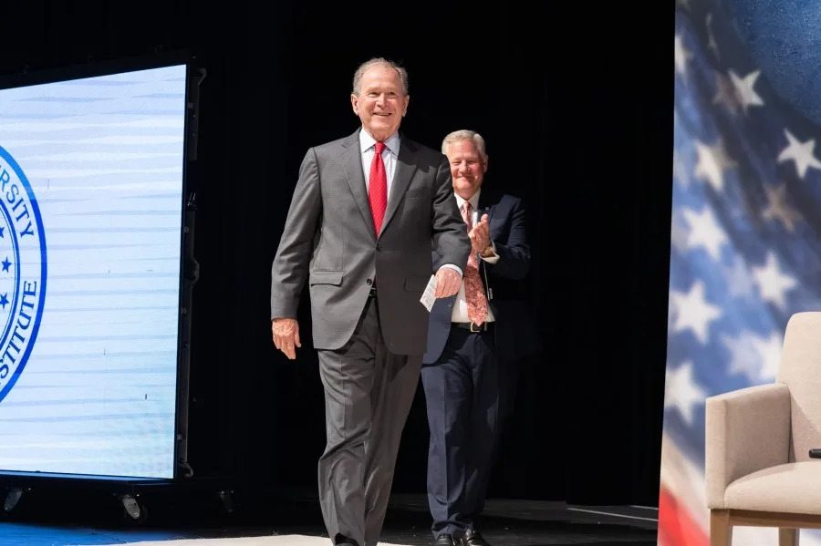 SEARCY, Ark.- President George W. Bush reflected on his time in office, the importance of democratic institutions, and the role young Americans play in shaping the nation’s future at Harding University Wednesday night. The former president’s address, titled “The Challenges Facing Our Nation in the 21st Century and the Power of Freedom,” was a part of a year-long distinguished lecture series celebrating America’s 250th anniversary. President Bush shared stories of his experiences during times of crisis and times of hope, emphasizing the importance of caring for one another and the nation. Biden announces Navy aircraft carriers to be named after Bill Clinton, George W. Bush Bush also encouraged students, faculty, alumni, community members, and local and state leaders to commit to learning and broaden their worldview. “Democracy is self-healing,” said Bush, who expressed confidence that the country will move forward with progress and endurance. “It was a tremendous honor to host President George W. Bush on our campus,” said Dr. Mike Williams, president of Harding University. “Moments like this provide our students with a unique opportunity to hear firsthand from leaders who have served our nation at the highest level. We are grateful for his willingness to share his experiences and encourage our students to pursue lives of leadership, integrity and service to others.” Former President George W. Bush draws inspiration close to his Dallas home in his latest paintings According to the university, the event continues a tradition of more than seven decades in promoting a deeper understanding of the Constitution, capitalism, and free enterprise, and the intersections of faith and civic life. The Distinguished Lecture series brings presidents, heads of state, business leaders, scholars, and thought leaders. To learn more about the American Studies Institute, visit harding.edu/asi. Copyright 2026 Nexstar Media, Inc. All rights reserved. This material may not be published, broadcast, rewritten, or redistributed. For the latest news, weather, sports, and streaming video, head to KARK.