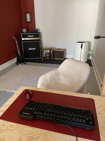 We hope you love our recommendations! While every product is independently chosen by our editors, BuzzFeed and our publishing partners may collect a share of sales or other compensation from the links on this page. You can read more about how our affiliate partnerships work in our Editorial Standards & Ethics Guide. If you're looking to declutter your workspace, make things more comfortable, or increase your productivity... step into my office, I've got 35 things to show you. Tech8 USA is a small biz based in Austin, Texas. Promising review: "Like everyone else, I stumbled upon this product because of a TikTok I saw. Setup was extremely easy and I'm pleased to say that my Teams green light is on all the time now. Workers of the world, unite." —Amazon Customer Get it from Amazon for $19.99+ (available in four styles). Note: Results from wearing blue-light blocking glasses are mostly a placebo effect. According to the Mayo Clinic, while blue-light blocking or filtering products such as blue-light glasses decrease the transmission of ultraviolet light involving wavelengths, there is no significant improvement in vision performance or sleep quality. Read more about it here. Promising review: "I started working full-time from home due to COVID, like everyone else, and I started to get a lot of headaches, my eyes were dry and heavy, and I was having issues with my sleep. My friend pointed out that I was on the computer now all day long when I had barely used computers before. I bought these glasses and have used them for about a week, and they are amazing!!! I feel so much better, and my body feels much better at the end of the day! I only wish they were a little lighter, and they are a little tight behind my ears." —Meghan McCutcheon Get it from Amazon for $14.99+ (available in nine frame colors and three lens colors). It comes in two pieces — one you can prop in front of your keyboard, and the other in front of your mouse. Promising reviews: "I've been working from home due to COVID and began experiencing wrist pain. The soft cushion from both items provided the relief I needed. Great products and price!" —Gaga2015 "Having worked from home for almost a year now without any ergonomic cushion, I finally decided to buy this and so glad I did. They come with stickers that you can place to avoid movement but so far they don't seem necessary...The mouse pad cushion feels perfect! I appreciate not having the ball of my palm resting against a hard surface all day long. This also isn't sliding around on the desk. Feels perfect. These cushions have a great memory foam feel but not so much that they are very sensitive to the touch, they mostly keep their shape." —UAstudentn Get it from Amazon for $13.98+ (available in 20 colors). And the removable cover is machine washable, too! ComfiLife is a small business based in San Diego. They're all about pain relief, comfort, and taking care of your body. Promising reviews: "I've purchased similar items in the past that visually looked like this but were stiff and rigid. This is amazing. Totally eased my back pain from my quarantined-at-home desk job. Highly recommend." —Bellarosa555 "Since I've started working from home (coronavirus quarantine) I really miss my office chair. I saw this reviewed on BuzzFeed and immediately ordered it. Best decision ever. It helps my posture and makes my stiff kitchen chair way more comfortable." —Melissa Schuler Get it from Amazon for $49.99 (available in seven colors). Promising review: "This is great to add some personalization to the desk. I like that it keeps my swearing cups from getting all over my desk. Is easy to write on and the two sides makes it easy to flip back and forth." —ajb1234 Get it from Amazon for $7.99+ (available in two sizes and in seven color combinations). Promising review: "Best purchase I have made in years. Only had it two days, but the first words out of my mouth to my wife were, 'I can work for hours like this.' If you work from home and like to work on the couch, recliner, breakfast nook, patio, etc, and you have your computer in your lap, this is an absolute must-have. Not only does it keep your legs and lap cool, but it also keeps your computer cool and able to process much more efficiently." —Trent Thiel Get it from Amazon for $27.99+ (available in three colors). The earplugs also come with a carrying case and eight different ear tips (XS–L) to ensure the perfect fit. Promising review: "Wore these to a restaurant that is always busy and noisy due to no noise canceling panels in the place. It's all hard surfaces. So it can get loud. With these in, I could hear the silverware clashing, chairs screeching across the floors, and the many conversations around me, but it was SUCH A DIFFERENCE. A 'soft' mute. Clarity. I felt much calmer and could hear the people I was with, more clearly than I expected. Worth every penny." —Victoria Get it from Amazon for $34.95 (available in six colors). A silicone super-soft version is also available for $20.95 (available in four colors). Promising review: "This fits perfectly in my small purse. I love that I can use this for my night time outings to take great selfies but also for work during my meetings. It has warm lights, white light, and a combination of both. You may also change the intensity of each. It really makes you look great." —Araceli Grande BTW, raising your laptop or monitor up to eye level makes for better ergonomics (i.e. reduced eye and neck strain). Read more about how ergonomic workstations can help at Cleveland Clinic. Promising review: "This was recommended in an article about handling working from home during this COVID-19 stay-at-home requirement — since workspaces at home aren't as ergonomic as at work when it comes to eight-hour work days. It is SO worth it! It's incredibly sturdy. The laptop is now placed at a perfect angle. I bought a wireless keyboard which I can use with my laptop when the laptop is in the stan