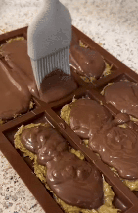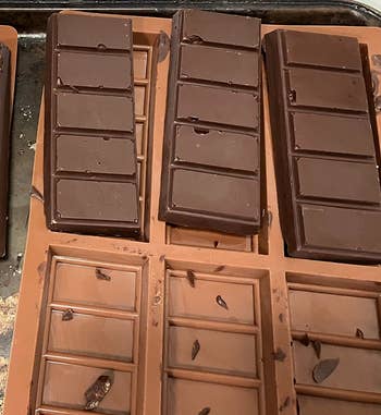 Promising review: "I used these molds to create homemade Nestle Crunch bars. It was easy to load these molds. I placed them on baking sheets and banged them on the counter to remove air bubbles, then loaded into fridge/freezer. The molds are compact enough that they fit easily into my side-by-side fridge. I did not add any release agents to the molds before using, and the chocolate bars popped out very easily." —Keith G.