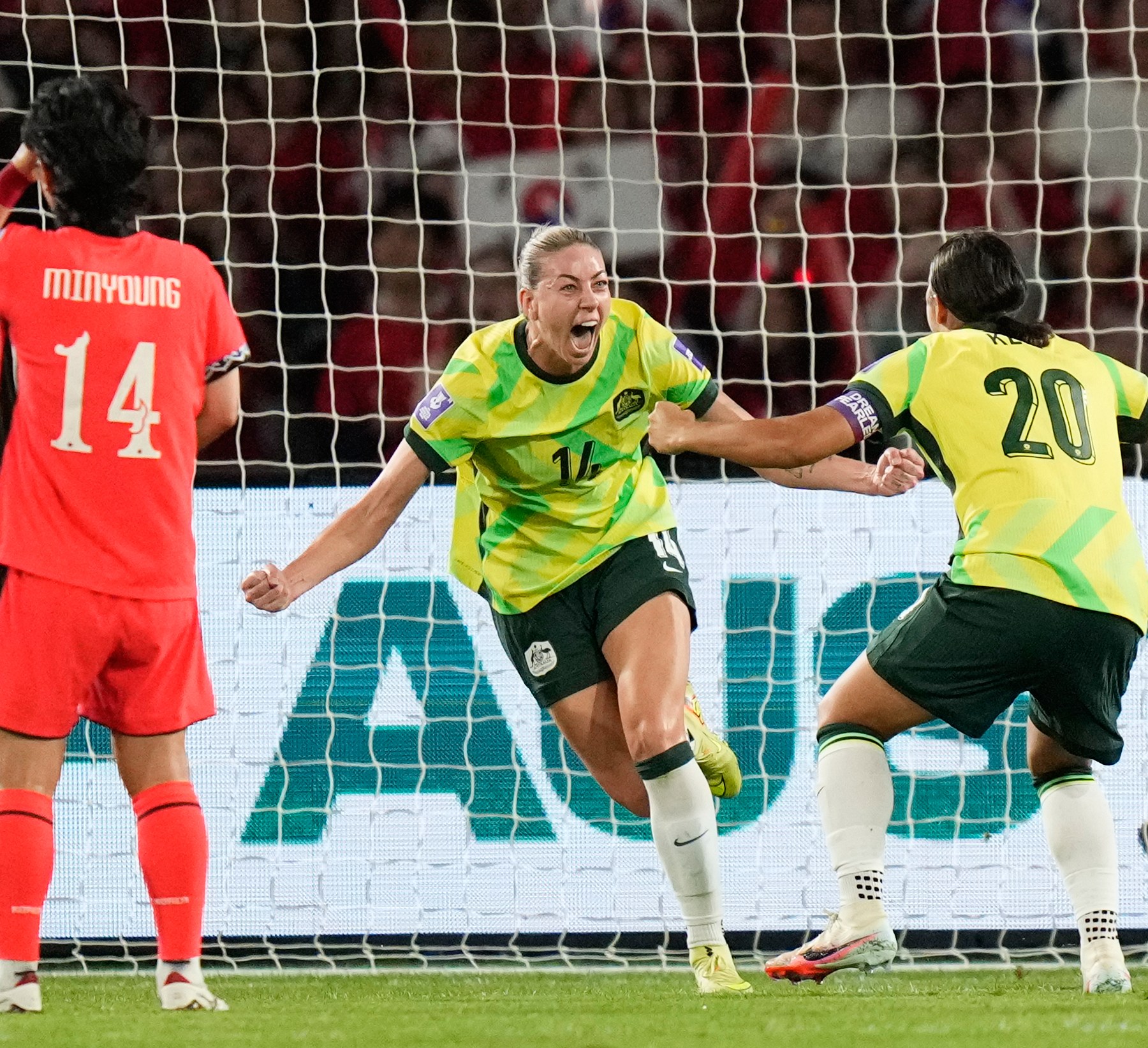 Australia beat North Korea 2-1 to set up Women’s Asian Cup semi against China or Taiwan, and seal FIFA World Cup spot. Share Save Sam Kerr scored one goal and created another as Australia advanced to the Women’s Asian Cup semifinals, securing a FIFA World Cup spot in the process, with a 2-1 win against North Korea. The North Koreans, three-time champions, had almost two-thirds of possession on Friday and played at a high tempo to keep the Australians unsettled, but weren’t able to convert their glut of scoring opportunities into more goals against a stubborn Matildas’ defence. The North Koreans had 21 shots at goal and 10 on target but couldn’t capitalise. Australia turned its only two shots on target into goals. Kerr playing a key role in both. In the ninth minute, the Chelsea forward poached possession from opposing captain An Kuk Hyang deep in the right corner and crossed into the area before Alanna Kennedy swooped onto a deflection and fired in a left-foot strike for her fifth goal of the tournament. Kerr made it 2-0 two minutes into the second half with a left-foot shot after a defensive lapse from the North Koreans, giving 2023 World Cup semifinalist Australia a cushion. But the North Koreans lifted their intensity again and cut the margin to 2-1 in the 65th, when Kim Kyong Yong passed into the box from the left and Chae Un Yong finish from close range. North Korea unleashed a wave of shots on Australia’s goal but goalkeeper Mackenzie Arnold denied them the equaliser. “It was a really good team performance defensively, (North Korea is) a good side and they had a lot of the ball and there was a lot of pressure,” Kerr said. “The crowd was immense today, got us over the line.” All four semifinalists at the Women’s Asian Cup qualify automatically for next year’s World Cup in Brazil. The Australians will next play the winner of Saturday’s quarterfinal between defending champion China and Taiwan. The North Koreans get another shot at qualifying for the World Cup in a playoff next week. The fifth and sixth-place teams in this continental tournament will also secure spots in Brazil. The end of the group stage earlier in the week was overshadowed by Iran’s departure from the tournament and the granting of asylum to members of the delegation. South Korea faces Uzbekistan at Stadium Australia in a night match in Sydney on Saturday after China and Taiwan meet in Perth. Japan heads into its quarterfinal matchup against the Philippines on Sunday with three wins from three games and a tournament-leading 17 goals without conceding.