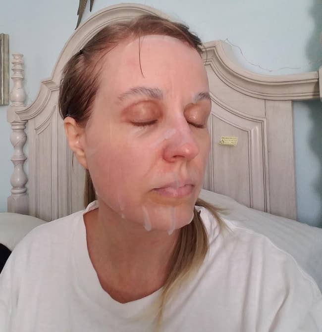 Promising review: "When I took the mask off, the skin around my forehead and chin area was smooth and moisturized, and my skin felt tighter and looked energized. I LOVE the fact that there was a lot of extra serum in the packet, too, that I could put all over my neck and chest. These masks are really good for the harsh effects the dry cold weather in New York has on my skin, and I’m so happy I have more to incorporate into my weekly nighttime routine!" —AmazonObsessed