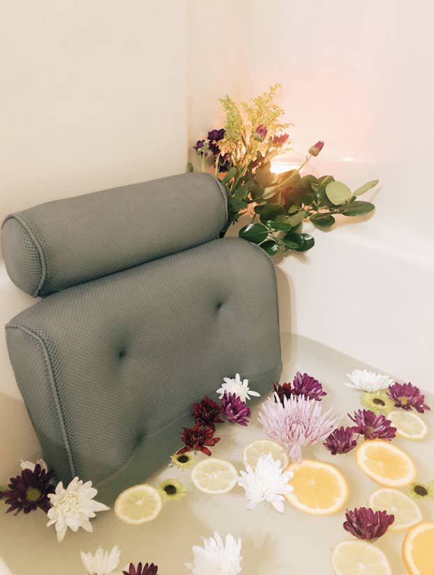 Promising review: "This has a lot of cushion for your back and neck. I had no issues with sticking it to the tub. The best part is the hook, which allows it to dry out well. In this time of working at home, I need a nice tub to help relax." —Danie McAnally