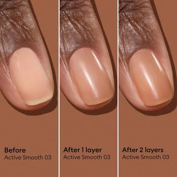 Promising review: "This is very high quality. I put this on my nails five days ago, and there is still no chipping. It feels nourishing on my nails and doesn’t have that nail polish smell. Plus, the nude color is beautiful (soft and natural). It looks like my nails were professionally done, and it did smooth out the ridges after application. Definitely recommend and worth the price." —AJ