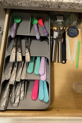We hope you love our recommendations! While every product is independently chosen by our editors, BuzzFeed and our publishing partners may collect a share of sales or other compensation from the links on this page. You can read more about how our affiliate partnerships work in our Editorial Standards & Ethics Guide. Your space may be limited, but your organization options are endless. Promising review: "Bought this shelving to hold all my spices and have their labels visible. Holds everything securely, and the magnetic strength is exceptional. A very good buy." —evrhandyman Get a set of two from Amazon for $21.99 (available in several colors and in sets of four or six). Reviewers also use this on their washing machines, dryers, and metal doors. Promising review: "I don’t know if it’s just me, but I don’t like a lot of stuff on my countertops. This is just what I was looking for. It’s compact and a space saver. The magnet sticks really well. It doesn’t move when I tear off paper towels." —Latasha Jackson Get it from Amazon for $16.99 (available in black or white). You can also add a magnetic shelf to the top of your stove and store the spice jars there! Promising review: "Finally!!! We searched for a long time for spice jars that would hold a nice amount of spices. These are perfect! With a pour or sprinkle option, window to see the spice level, strong magnet, and space-saving square shape! We planned to just put our 'popular' spices in them, but we love them so much we are buying another set so we can have all our spices organized!!" —JT Get it from Amazon for $14.99+ (available in three pack sizes). This magnetic bar comes with mounting hardware and instructions to hang it up, and it is also compatible with Velcro or any kind of mounting tape. Btw, it's corrosion-, heat, and fire resistant, so you can mount it near the stove! Promising review: "I want to order another one!!! I wish I had thought to purchase one of these sooner. The magnet is strong and holds plenty of my everyday knives. I decided to put it on the side of my fridge, and it holds perfectly when you remove the back and stick directly on. I didn't need anything extra to hold it in place either. Now, I have more counter space." —RayJoni07 Get it from Amazon for $15.29 (available in six sizes and two styles). It comes with cup hooks for mounting, but you could always use Command hooks if that's your preference. macraYAYmacrame is an Indianapolis, Indiana-based shop that makes a variety of cool macrame accessories. Promising review: "Super quality, shipping was very quick. The piece is such a space saver and looks absolutely adorable. Functional and cute!" —Megan Johnson Get it from macraYAYmacrame on Etsy for $35. Promising review: "I have a ridiculously small bathroom and a super small vanity. After too many instances of my dryer and straightener falling to the floor, I went searching for an option to get them off the non-existent counter and onto the towel holder next to my sink. This product has done the trick — it helps me keep my counter space organized and provides me with a great, heat-resistant holder to place them in while I'm working through my hair. Highly recommend!" —Amazon Customer Get it from Amazon for $24.99 (available in three colors). Promising review: "These come with their hangers and will add considerable storage. I put one on the inside of our pantry door and the second on the back of the door going from the laundry room to the garage. I initially was interested in getting one for the pantry, but the second was a nice bonus, and it makes a great place to hold cleaning supplies. Well-made, excellent price." —Kimberlee This one will keep up to 48 pieces neatly arranged! And now, any time a guest says they need a fork, you won't have to jump up and say, "I'll get it!" while sprinting to your drawers to protect them from the horror. Promising review: "I thought this would be handy and help with space management in a small apartment. It turned out to be absolutely perfect. It keeps the silverware clean and stores a lot in a very small space. I love it. I got two because I inherited my grandmother's silverware, so there are two types of forks and two types of spoons, and I wanted things separate and organized. Two organizers fit side-by-side in a standard apartment drawer. After getting these, I picked up the knife organizer, and it’s just as handy and useful." —Magpie Get it from Amazon for $13.99 (available in three sizes/styles). The necessary mounting hardware is included. Promising review: "Exactly what I was looking for. Strong and sturdy, compact for my small kitchen. Attached easily to the back of my pantry door. Very happy customer here." —Paul Get a set of two from Wayfair for $41.99 (originally $54.99; available in two sizes). It comes with two wide bins, two narrow bins, one can dispenser that can hold 10 standard 12-ounce cans or juice boxes, and one egg bin with a stackable lid that can hold 14 eggs. Promising review: "It's nice to be able to find things in the refrigerator and be able to pull out the whole tray container to see what's in the back of the fridge. I don't know if this happens to you, but I find my way to the back every so often, and come to find out a jar in the back expired a year ago. Now I can see everything and use it." —BookBroke Get a six-piece set from Amazon for $36.99 (also available as a set of eight). Promising review: "This space saver K-Cup is wonderful! It is attractive and keeps my counter clutter-free. It is lightweight but very sturdy. I would highly recommend this for anyone wanting to gain valuable counter space." —christine h Fused Line is a Seattle-based small business that specializes in KitchenAid and coffee accessories. Promising review: "Such a nifty, lovely space-saving attachment! Got this for my sister, and she loves the aesthetic and how easy and practical it is to use." —GoldenTckt Get it from Fused Line on Etsy 