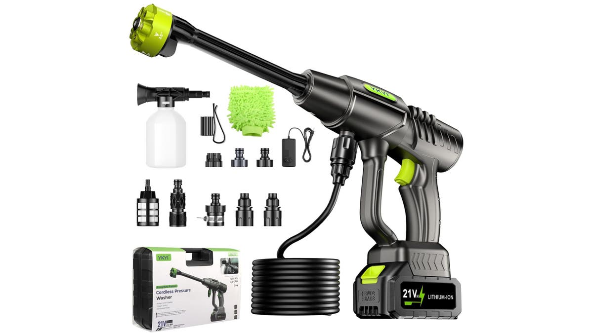 This cordless pressure washer makes quick work of cleaning cars and outdoor furniture, and it’s over $185 off. The 6-in-1 nozzle adjusts from light rinse to strong spray, and the rechargeable battery powers through typical jobs. A 24-foot hose, case and microfiber mitt round out the set.