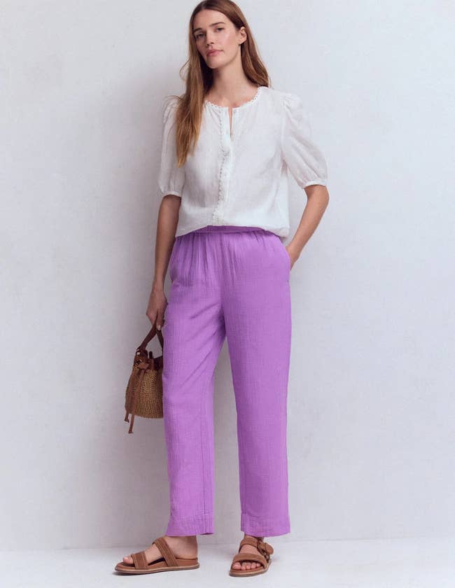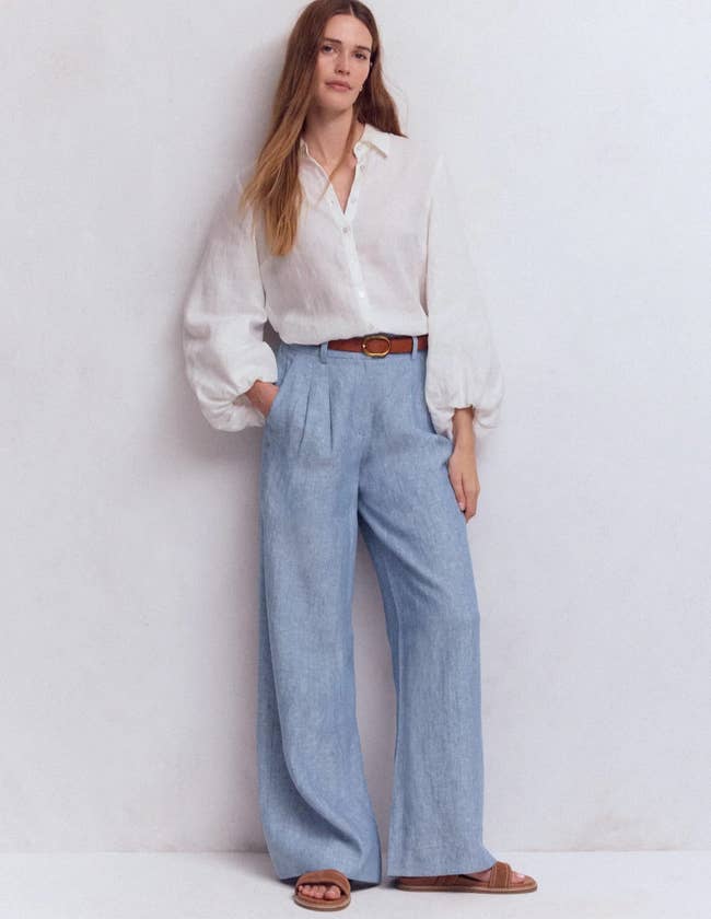 Promising review: "Great fit, slightly generous sizing so could size down. Easy to add a belt. Generous pockets which lie flat at the side. Neat pockets at the back. Great with shirt tucked in or partial tuck. A more fashionable wider leg with generous pleats at the waist....These chino shirts wear so well and resist creasing unlike their linen cousins." —Claire
