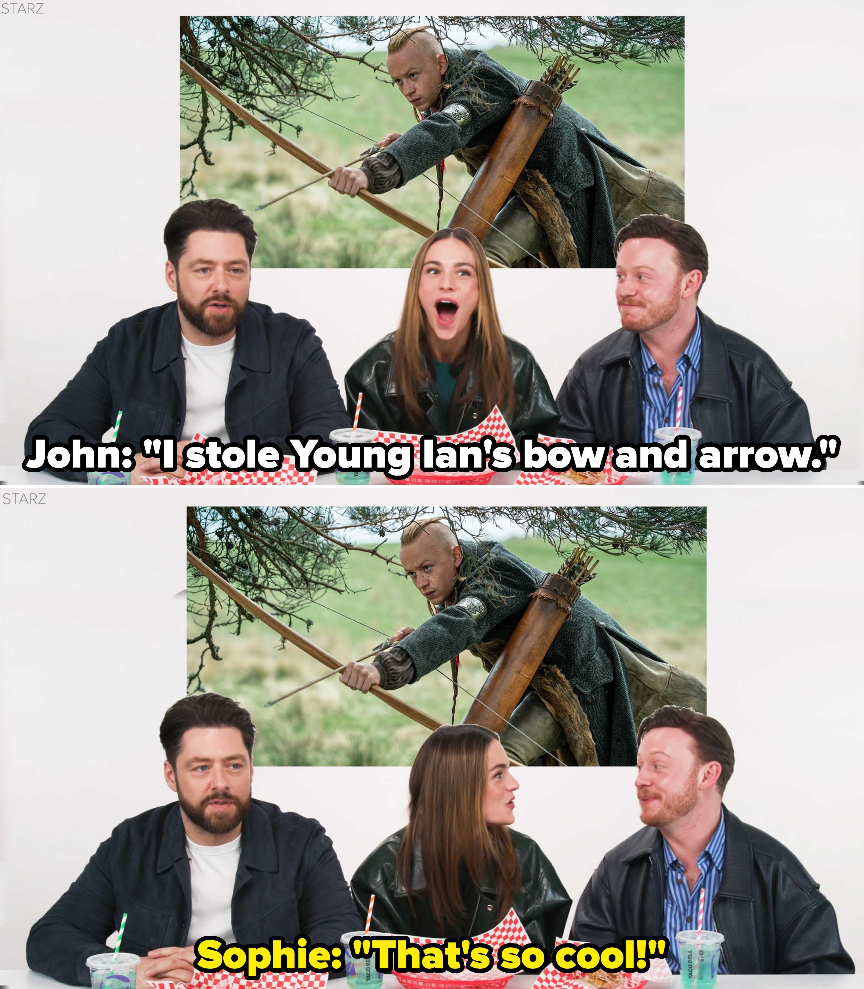 "Outlander" Stars Richard Rankin, Sophie Skelton, And John Bell Try American Fast Food For The First Time