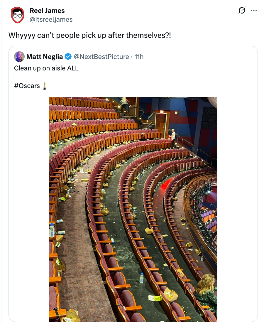 This Photo Revealing The Trash Left Behind In The Oscars Theater Is Going Viral