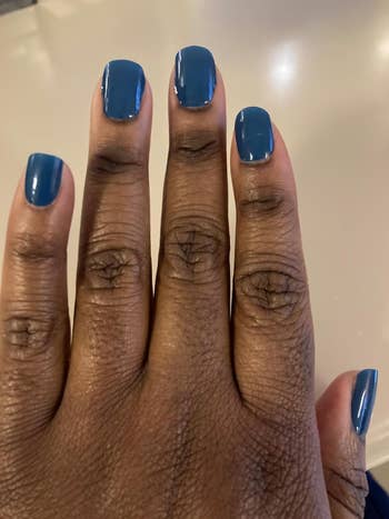 Promising review: "Love these nails! The picture is them after a week (still going strong)! I put them on for my honeymoon. I’ve been in the ocean for hours, and they are not showing any wear. They took maybe 15 minutes to apply — I did use a gel top coat and I think that helped keep them from chipping this long. Will be buying more!" —Amazon Customer