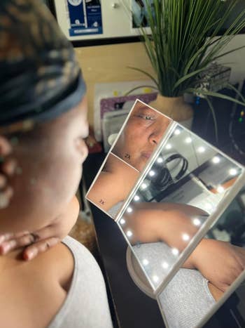 Promising review: "It is very nice, featuring a bright light with adjustable brightness. It includes several magnification mirrors, making makeup application much easier. Love the easy-on button." —Patricia Landes