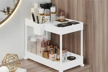 Promising review: “Top notch and durable. Excellent quality, fair price. Doubled the space in my bathroom cabinet! Extra bonus… no assembly needed!! Brought it home, placed it in the cabinet, filled the slide-out drawer. Placed a clear tote on the top ‘shelf.’ Now it's so easy to see my stored items, and it looks neat and tidy. It transformed my space!” —rebecca