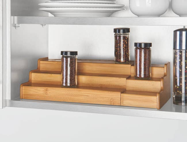 Promising review: “Flexibility is key! This is the second Better Homes and Gardens spice rack I've bought. Five stars for both price and flexibility. I have weird corner cabinets, and the adjustable feature allows me to use as little or as much space as I need. The only con to these is the lack of a restraining bar. Spice jars do slip off once in a while, but I've never broken one from it.” —Claudia