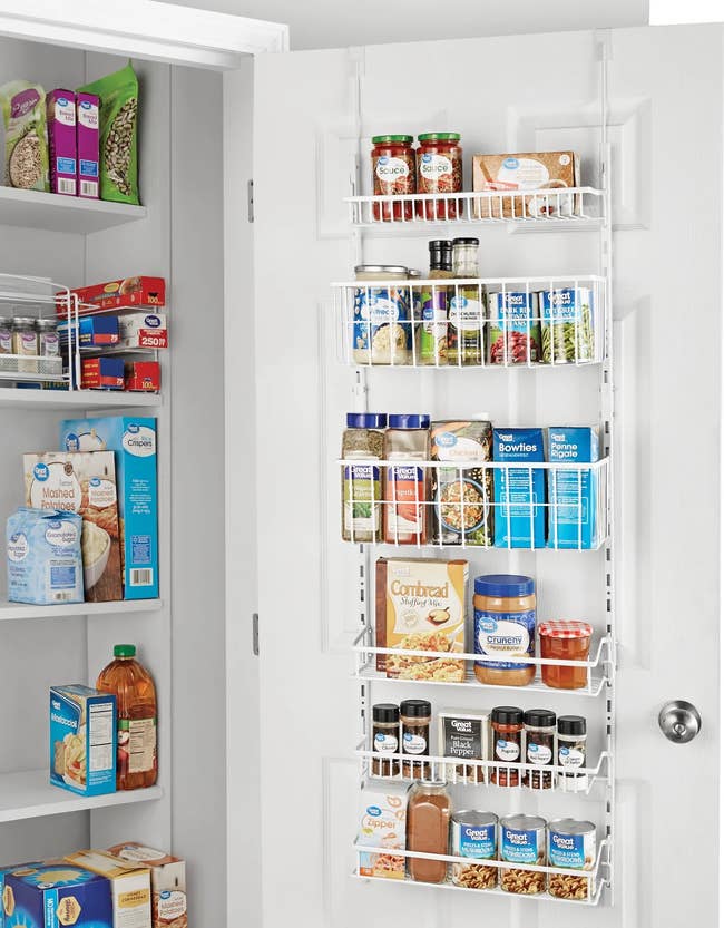 Promising review: “King of all door racks! What a relief to get your stuff off the floor or out of the overstuffed cabinet and into an easily accessible location. It's easy enough to put together and hang over the door. These have now organized our spices, canned goods, food storage containers, first aid kit, vitamins, cleaning supplies, flip flops, scarves, gloves, hats, hair products, pet supplies, crafting supplies, paints, and more. Buy one, and you will keep coming back for more.” —Leeza