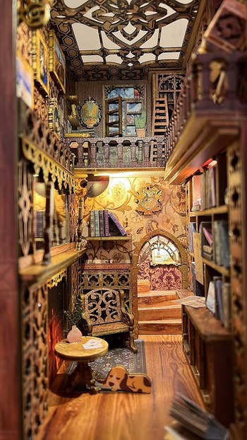 Promising review: "I do a lot of miniature models and dollhouse building for fun and I really enjoyed this one. It's fairly easy to put together and the instructions were easy to follow. This type of model has minimal gluing steps since it's mostly snap together pieces — this is nice since it doesn't need time to dry, and it's very easy for beginners. Nice quality of material. Thick wood, and I didn't have any issues with it splintering/cracking. Would recommend for a fun project." —Elsie