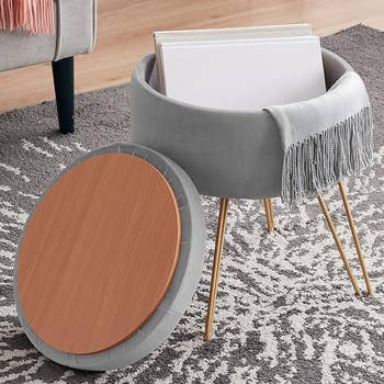 Promising review: "I was using a small foldable step stool in my bedroom to reach the top shelves of my wardrobe. But you know, those things aren’t pretty. It wasn’t be bringing me joy, just begrudging utility. This ottoman brings me joy. It’s pretty, it’s lightweight so I can move it easily to use it as a step stool, and the storage capacity is perfect for things like my nightly moisturizers, my Kindle and journals, and other little miscellaneous things." —Monica N.