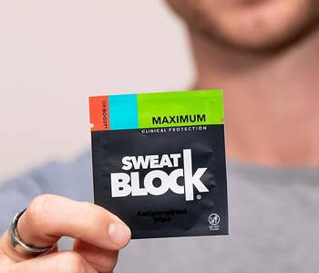 Promising review: "For anyone who might be a skeptic, please allow me to put you at ease. If you have hyperhidrosis, meaning it can be 9 degrees outside and you're still sweating under your arms, this product has the potential to change your life. I would sweat THROUGH a sport coat before noon. Enter the Sweat Block product. I've had it for three weeks, and it is life-changing. I DO NOT sweat under my arms anymore. I'm still on the original box that I bought three weeks ago. I had to write a review after I was cleaning the garage today in 85-degree heat...I was sweating through my shirt on my back...BUT NOT MY UNDERARMS. It is amazing!" —Frosty McGee