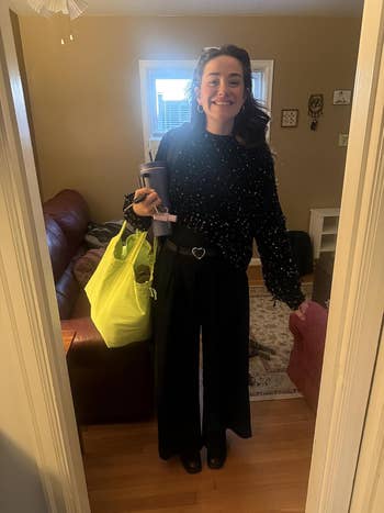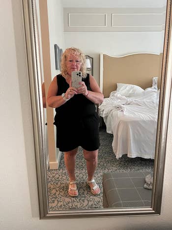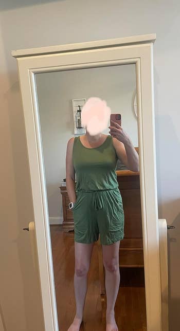 Promising review: "I'm not one to wear or even buy a jumpsuit, but I thought, what the hell, let's do this. Once it arrived, I opened up the packaging and thought...oh man, what did I buy? It was thin and weighed practically nothing. I still tried it on, and to my surprise, I absolutely loved it! I love how loose-fitting it is and how thin and breathable it is. It literally feels like wearing pajamas, but it still looks nice. For first-timers like myself, I highly recommend this jumpsuit." —Ashley Zaugg
