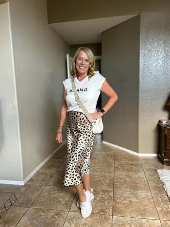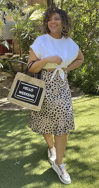 Promising review: "I cannot emphasize how much I love this skirt. I wish it came in more colors! The fit for me was true to size. This skirt is very stylish and great for any season. The lightweight fabric makes it flow really well and I always get compliments when I wear this. I’m so happy with this purchase, and for the price, you can’t beat it!" —Maddie M