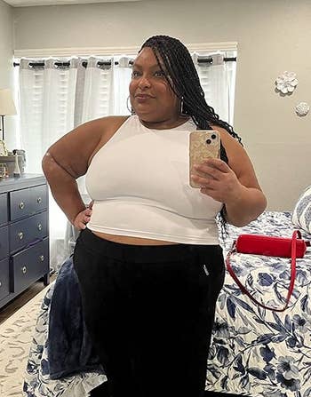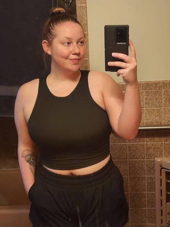 Promising review: "Don’t hesitate, just buy it. I bought it in one color, and I purchased three more as soon as I tried it on. The material is like butter. It doesn’t have a built-in bra, but it’s lined. You could put on a bra with this if you’d like, but there’s no need. It’s cropped but still long enough not to roll up weirdly at the bottom. Can dress this up or down! I’ll probably end up buying every color by the end of the year; it’s just that incredible." —Danijtate
