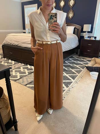 We hope you love our recommendations! While every product is independently chosen by our editors, BuzzFeed and our publishing partners may collect a share of sales or other compensation from the links on this page. You can read more about how our affiliate partnerships work in our Editorial Standards & Ethics Guide. It's bad enough that you gotta go to work...now you have to put together an outfit? Unless otherwise specified, all sizes in this post are listed in women’s. Promising review: "I always get compliments on this color! It’s the perfect basic top for an office setting. Not sheer and just not enough stretch." —Matthew B. Get it from Amazon for $19.99 (available in sizes XS–3XL and 28 colors; this plus-size option is similar!). Promising review: "EXTREMELY HIGH QUALITY. I am so pleased with this skirt that I’ve now ordered three. The pink is almost a bright fuschia and I feel super 'Elle Woods' in it. The Storm color is a soft greige (gray/beige) and looks stunning at work. It doesn’t shift at all and doesn’t cling too badly (except where you want it to). Overall INCREDIBLE purchases." —Hutson Family Get it from Amazon for $49.90 (available in sizes XXS–5X and seven colors). Promising review: "These are my new workhorse pants for office wear. Nothing fancy, but they're comfortable, they fit well, they're priced right." —Amazon Customer Get it from Amazon for $22.05+ (available in sizes 16–24, short lengths, and seven colors). Promising review: "I'm a 5'1.5" girl and have been STRUGGLING to find office pants that I haven't needed to get hemmed. I bought these in the XS short, and they fit like a dream!! So comfy. The waistband is very stretchy, and wearing these feels like sweatpants. They are on the thinner side — I wouldn't wear them in winter without warmer leggings or something underneath, but for summer or autumn, they are perfect." —shalom Get them from Amazon for $28.89+ (available in sizes XS–XXL, 1X–2X, short lengths, and 28 colors). Promising review: "These truly are one of my favorite things to wear to work every day, and I have one of every color. (I think I'm missing like three or four colors, but they are amazing!) The durability is great; they wash up fabulously. Great for the value. Truly a must-have!" —Christy Hawkins Get it from Amazon for $52.99+ (available in sizes XS–XXL, XL Plus–5XL Plus, and 26 colors). Promising review: "Buy the dress!!! If you work in a professional environment or just want to dress up, this dress is for you. It has a slight stretch, unlike other tweed styles, so it will hug all your curves. I got so many compliments on it. It’s very comfortable and very stylish." —Jake/Shelby Arians Get it from Amazon for $39.99 (available in sizes S–XXL and 42 colors/styles). Promising review: "What can I say? The title said it's all. I absolutely love this skirt. I love the fabric; it's breathable, it's comfortable, and it looks amazing on me. It hugs without being too tight. Sometimes, skirts like this can be a little stiff up in the waist area, causing them to be so uncomfortable, but not this skirt. The fabric moves with you, making it so much more comfortable. And if you work in an office, and you have to wear suits and skirts all day long, that's a great find. Would love to order this in cream/beige." —Tara Get it from Amazon for $19.99 (available in sizes XS–5X and 35 colors). Promising review: "Elevates every work outfit! These are the cutest belts! I get the most wear out of the black, and it makes every pair of trousers look super chic and professional. The adjustable back is good for pants with different waists and is super comfy even after a big lunch! Also, I get compliments all the time, and some people even think it's designer haha." —Amy S Get them from Amazon for $14.99+ (available in three sizes, various colors, and packs of two). One reviewer said the XL is comparable to a 20/22 in plus sizes. Promising review: "This set is divine. Truly. The length of the pants works well if I wear a high-heeled shoe. This is a very professional-looking set while also being wonderfully comfortable. Definitely recommend!" —caligander Get it from Amazon for $43.99 (available in sizes XS–XL and six colors; this plus-size option is very similar!). Promising review: "I have this top in the beige and the olive green color, and I love it! I’ve worn it to job interviews, work functions, church, and so many other things. I love it! Super versatile and well made!" —Rebecca Hendrix Get it from Amazon for $19.97+ (available in sizes XS–XL and 19 colors). Promising review: "I've been looking for an affordable pullover vest for the office. I've been heavily leaning toward the '80s/'90s look lately, and this was perfect! Pair it with a mockneck and it's phenomenal. I'm usually 3/4x, but this fits with room at a XX, so if you're looking for the oversize look, it will definitely work." —Darian Get it from Amazon for $19.99+ (available in sizes S–XXL and 28 colors). Promising review: "I am very satisfied with the shoes, the toes do not stick out of the shoes, they are quite comfortable, they are not high, so they are appropriate for working in the office or standing all day." —Mrs. Retamar Get it from Amazon for $25.99+ (available in sizes 5–11 standard, 7–10 wide, and 14 colors/styles). Promising review: "Love this dress. Bought it to wear to work and thought it would be great for the holidays with some tights and heels." —Lauren J. Get it from Meshki for $155 (available in sizes XXS–3XL and three colors). Promising review: "I love this. I bought it for a conference, so it works perfectly. Paired with a knee-length skirt, it gives sort of 1950s vibes. Also, IF YOU HAVE BROAD SHOULDERS, this fits fine, no pulling or puckering in weird spots." —Cari Get it from Amazon for $27.06+ (available in sizes S–XXL and 22 colors). Promising review: "Absolutely love this cardigan. It is perfect for a fall o