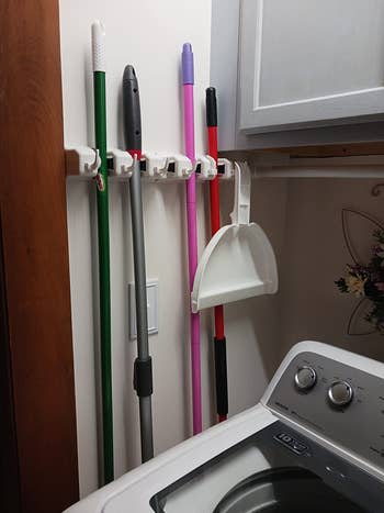 Promising review: "This has been a game changer in my garage. Easy to install and holds up lots of things. So nice to get the brooms, etc, off the floor and have them handy to use." —Shelley O.