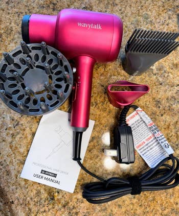 Promising review: "This little hair dryer packs some power and quality to its punch!! This guy dries my hair so quickly it’s crazy! The cord length is nice, I can maneuver it around really well when drying my hair too! I love this and I haven’t even used all the attachments yet either. I have had it for six months and I’m really happy with the value for my money! Plus it’s gorgeous, I got the hot pink one and I’m super happy!" —Mon