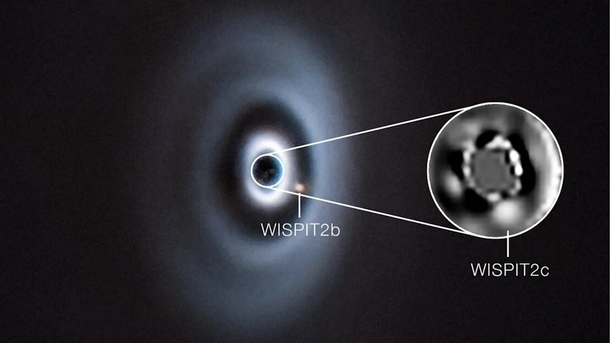 When you buy through links on our articles, Future and its syndication partners may earn a commission. Astronomers have observed two planets forming around a distant infant star, thus discovering a planetary system that offers us a look at the appearance of the solar system over 4 billion years ago. The infant star in question is named WISPIT 2, and it's located around 437 light-years away with an estimated age of around 5.4 million years old. If that makes this star sound anything but an infant, consider that our middle-aged star, the sun, is 4.6 billion years old. WISPIT 2 is surrounded by a donut-shaped cloud of gas and dust called a protoplanetary disk in which scientists have now detected two planets, designated WISPIT 2b and WISPIT 2c. And excitingly, there are structural hints with WISPIT 2's protoplanetary disk of more forming protoplanets. "WISPIT 2 is the best look into our own past that we have to date," discovery team leader Chloe Lawlor of the University of Galway, Ireland, said in a statement. "These structures suggest that more planets are currently forming, which we will eventually detect." WISPIT 2 is only the second system in which astronomers have successfully detected two forming planets. The other system, PDS 70, lacks the extended disk and the distinct gaps and bands seen around WISPIT 2. That means that this system offers an unparalleled look at how planetary systems like our own solar system are formed. "WISPIT 2 gives us a critical laboratory not just to observe the formation of a single planet but an entire planetary system," team member Christian Ginski of the University of Galway said in the statement. WISPIT 2b was the first infant planet discovered around this infant star, detected last year and determined to have a mass around five times that of Jupiter and orbiting its parent star at a distance equivalent to 60 times the distance between Earth and the sun. Following this discovery, astronomers found hints of an additional object closer to WISPIT 2, confirming this to be a planet using the Very Large Telescope (VLT) and the VLT Interferometer (VLTI). The newly found planet, WISPIT 2c, orbits its parent star at around 15 times the distance between Earth and the sun, meaning it's about four times closer to its star than WISPIT 2b is. The researchers then captured an image of this forming planet using the VLT's Spectro-Polarimetric High-Contrast Exoplanet Research (SPHERE) instrument, further confirming it is a planet with another VLT instrument, GRAVITY+. "Critically, our study made use of the recent upgrade to GRAVITY+ without which we would not have been able to get such a clear detection of the planet so close to its star," team member Guillaume Bourdarot of the Max Planck Institute for Extraterrestrial Physics in Germany said in the statement. Both WISPIT 2b and WISPIT 2c are carving grooves in the protoplanetary disk around their parent star. This is happening because, as they orbit the star, their gravitational influences collect material from the disk to facilitate their growth. At least one more planet is indicated in the system by a less-pronounced gap —further out from the system's central star than WISPIT 2b sits. The team hopes this third planet will be visible with the Extremely Large Telescope (ELT), currently under construction in the Atacama Desert region of northern Chile. "We suspect there may be a third planet carving out this gap, potentially of Saturn's mass, owing to the gap's being much narrower and shallower," Lawlor said. The team's research was published on Tuesday (March 24) in The Astrophysical Journal Letters.