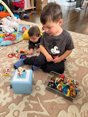 This toy has bought me so much time. My kids adore theirs — even though they're only 4 and 2 — they have no problem understanding how to turn the Toniebox on, change the volume, and place different characters on top to tell various stories. He's a big fan, as am I! It can also be used while it's charging, so there's no need to worry about your toddler having a meltdown if they want to play with it while the battery is drained (phew).
