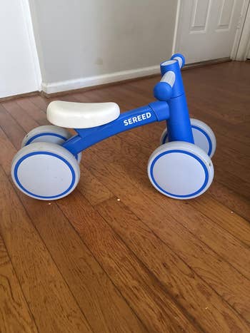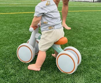 Promising review: "This bike is perfect for a first birthday gift. It’s great inside and outside, my son loves it and it feels very safe and sturdy. Also, very cute colors!" —Nikki