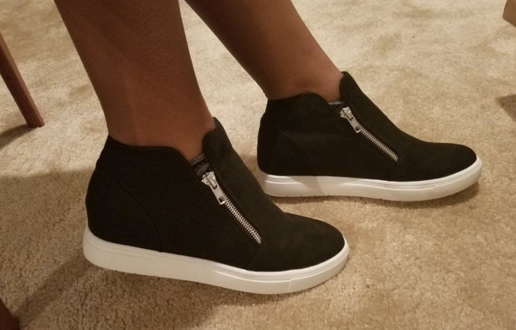 Promising review: "Fits perfectly! I have wide feet and they come in wide sizes. Perfect wiggle room in the toes and no areas that rub or poke. Both zippers work and the white part doesn’t have cheap stitching like other brands. They're comfortable and you can hardly tell there’s a hidden heel. I feel so tall!" —Jane