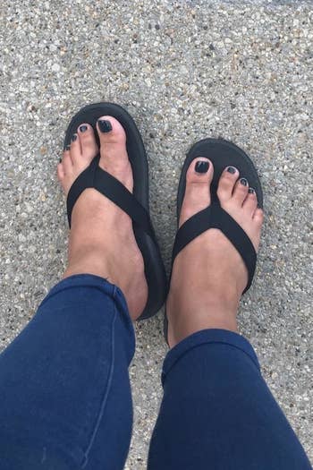 Promising review: "I have a wide foot where you know how the littlest piggy don't want to fit? These keep my pinky toe in check. They are cute and comfortable. They're also true to size and easy to get on and off. They go with everything." —Lisa B