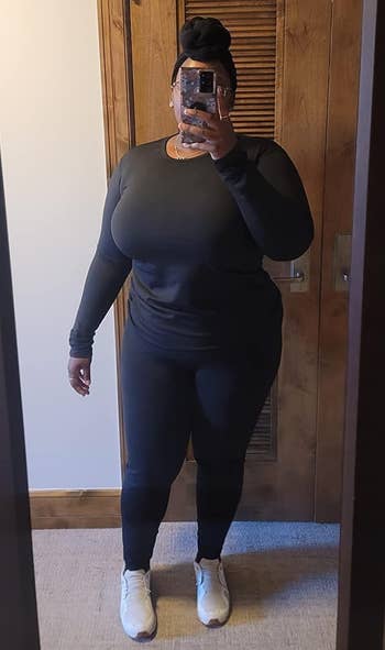 Promising review: "This is by far the best money spent on clothing! I love this outfit, it's so comfortable! I will say the tag was a bit itchy on the top piece so I had to cut it off, but otherwise 20/10. This outfit is what I treat myself to on my self-care days and relaxing moments. Personally, I don't think I'd wear it out and about, but around the house it is just so perfect! And what I look like in my own house doesn't matter, but my comfort definitely does!" —Wendy
