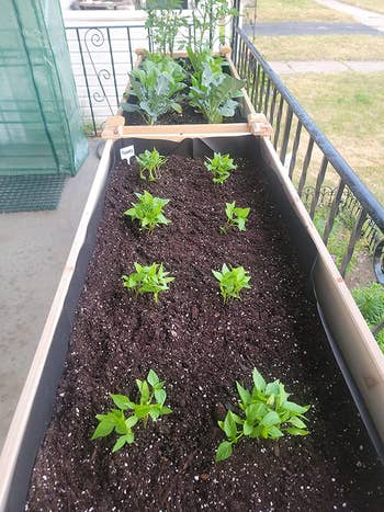 Promising review: "Love this product for so many reasons. The raised design keeps our dogs and nature friends out of the garden. It's great for elderly and people with back or knee problems. You can still garden. Easy to put together. We got a 4-foot garden. Possibly overloaded it, but we have four tomato plants, three eggplants, three green peppers, three red peppers, and three strawberries. Highly recommend." —Cybil