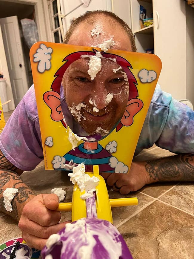 We hope you love our recommendations! While every product is independently chosen by our editors, BuzzFeed and our publishing partners may collect a share of sales or other compensation from the links on this page. You can read more about how our affiliate partnerships work in our Editorial Standards & Ethics Guide. You'd better make sure you've vacuumed recently, because you and the family are going to be doing a lot of ROFL-ing. Promising reviews: "This game comes in a small regular deck, and it is seriously so much fun. The rules are extremely simple and seem age-appropriate for nearly everyone. I think kids would especially have fun, but I could definitely see getting great laughs amongst a group of adults. The cartoon nature of the art is really fun, and I was beyond pleased with the value of the deck. We can't wait to play this with our friends and family on our next camping trip. Good clean fun!" —Miscellaneous Reviews "This game totally reminds me of Happy Salmon. it’s just as chaotic, silly, and ridiculously fun! It’s super easy to learn (we were playing within a minute), and every round had us cracking up. The idea is simple: you basically mimic bird calls (yes, out loud!) and race to find your match in the middle of all the hilarious noise and fast-paced card swapping. The sounds people make are absolutely absurd in the best way possible, and the energy is nonstop. The artwork is adorable, the gameplay is quick, and it’s the perfect pick for parties or family gatherings when you want something light, loud, and full of laughs to get everyone go." —PC Promising reviews: "Bought this for our family Christmas gatherings this year — greatest thing ever!! Every person, of every age, from seven to seventy five, had a blast with this! So many laughs and thirty second dance parties all through our Christmas Eve and Day!!" —Marie S "I purchased the 30 Second Dance Party - The Button as a seventh birthday gift for my daughter, and it was a huge hit! She was introduced to it in her school music class and it was her #1 birthday request. The button is so much fun – it plays upbeat music and instantly gets everyone dancing. My daughter absolutely loves it and uses it every day. The design is simple and easy to use, making it perfect for kids. It’s great for parties, family time, or just spontaneous dance sessions. It’s a fun, interactive gift that brings a lot of joy and laughter. Highly recommend it for anyone looking for a fun, unique gift!" —Nicole Get it from Amazon for $29+ (available in one, two, and eight packs) Promising review: "My son would play this game every day if he could. I feel like I really hit it out of the park when I added it to my cart and saw the joy in his eyes as the first whipped cream pie flew into my face. Every time I went to the grocery store, he would ask me if I was going to add whipped cream to the cart. I had to stop buying it because then all I do every day is get whipped cream slammed into my face. It's lasted us a good few months and still going strong, and it makes us laugh every time we play it. It's a good bonding experience." —Coby Promising review: "We bought the Iroo Mini Karaoke Machine for our kids and it’s been a big hit. It’s compact, lightweight, and super easy for kids to use on their own. The Bluetooth connection was quick and worked smoothly with our phone, and the sound quality is surprisingly good for such a small speaker. The microphones are fun and responsive, and the built-in voice effects add a lot of laughs. Battery life has been solid for several play sessions, and it’s easy to recharge. This is great for playdates, birthdays, or just letting kids perform their 'concerts' at home. Overall, it feels like a well-made toy that delivers exactly what you expect. Great value and a fun gift idea for kids who love music and singing." —Anna Finds Decor Get it from Amazon for $18.99+ (available in 14 colors/ styles). Promising review: "We bought this giant Jenga game for our camper, it instantly became a favorite! It’s sturdy, well made, and perfect for outdoors play. The oversize blocks make it even more exciting when the tower comes down! From morning coffee on the picnic table to evening games by the fire, it keeps everyone from kids to adults laughing and competitive. It’s easy to pack up, the carrying case makes it convent to bring along on trips. If you are looking for a fun, simple game to bring people together while camping or hanging out at the lake, this is it!" —Danna McKinney Get it from Amazon for $89.95+ (available in three sizes). Promising reviews: "Silly Poopy’s Hide & Seek is such a fun and unique toy! My toddler loves the talking, singing, and colorful rainbow features. It keeps them entertained for hours and is perfect for hide and seek games. Comes ready to go with batteries included. Great stocking stuffer and sure to bring lots of laughs!" —Nikki B. "I bought this after watching a video review and let me just say, my kids absolutely love this! It's a very simple idea but it works so well. My 3-year-old and 6-year-old love playing together and have actually stumped me while hiding it. It's a very simple game to play as you just hide it and press a button, which activates the hiding mode. While the kids are looking for it, the poopy will make sounds — thus giving clues to its location. Once the poopy is found, you press the button again and it sings a victory song. Who knew that poop can be so much fun!! This product is reasonably priced, much less expensive than many other toys that won't keep the attention of a child. This is perfect for rainy days indoors and a great alternative to watching TV. This is probably one of the best purchases that I've made in regards to activities and every household should have one." —Michael J. Deldue Get it from Amazon for $11.97 (also available in gingerbread man, ghost, and egg versions). Promising review: "My child can't stop playing with t