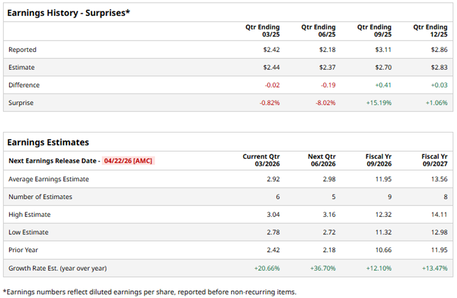 With a market cap of $27.9 billion, Raymond James Financial, Inc. (RJF) is a diversified financial services firm that provides wealth management, investment banking, asset management, and banking solutions to individuals, corporations, and institutions across the United States, Canada, and Europe. It operates through multiple segments, including private client services, capital markets, asset management, and banking. The Saint Petersburg, Florida-based company is set to announce its fiscal Q2 2026 results after the market closes on Wednesday, Apr. 22. Ahead of this event, analysts forecast RJF to report an adjusted EPS of $2.92, an increase of 20.7% from $2.42 in the year-ago quarter. It has exceeded Wall Street's earnings estimates in two of the last four quarters while missing on two other occasions. Everyone Is Talking About Volatility. That’s Not The Story. Iran, Oil Prices and Other Key Things to Watch this Week Should You Buy the Dip in Western Digital Stock as Google Launches TurboQuant? Get exclusive insights with the FREE Barchart Brief newsletter. Subscribe now for quick, incisive midday market analysis you won't find anywhere else. For fiscal 2026, analysts expect Raymond James Financial to post an adjusted EPS of $11.95, up 12.1% from $10.66 in fiscal 2025. In addition, adjusted EPS is anticipated to grow 13.5% year-over-year to $13.56 in fiscal 2027. Shares of Raymond James Financial have dropped marginally over the past 52 weeks, lagging behind the S&P 500 Index's ($SPX) 11.9% increase. However, the stock has shown less pronounced decline than the State Street Financial Select Sector SPDR ETF's (XLF) 4.7% decrease over the same period. Shares of Raymond James Financial fell marginally following its Q1 2026 results as a 21% drop in capital markets revenue to $380 million signaled weakness in its investment banking business, particularly due to lower mergers and acquisitions and advisory revenue. This decline overshadowed growth in other segments, even though asset management revenue rose 11% to $326 million and private client group revenue increased 9% to $2.77 billion. Additionally, profit fell to $562 million ($2.79 per share) from $599 million ($2.86 per share), and non-interest expenses rose 8% to $3.01 billion, further pressuring investor sentiment. Analysts' consensus view on the stock is cautiously optimistic, with a "Moderate Buy" rating overall. Among 15 analysts covering the stock, five recommend "Strong Buy" and 10 "Holds." The average analyst price target for Raymond James Financial is $185.85, suggesting a potential upside of 31.5% from current levels. On the date of publication, Sohini Mondal did not have (either directly or indirectly) positions in any of the securities mentioned in this article. All information and data in this article is solely for informational purposes. This article was originally published on Barchart.com