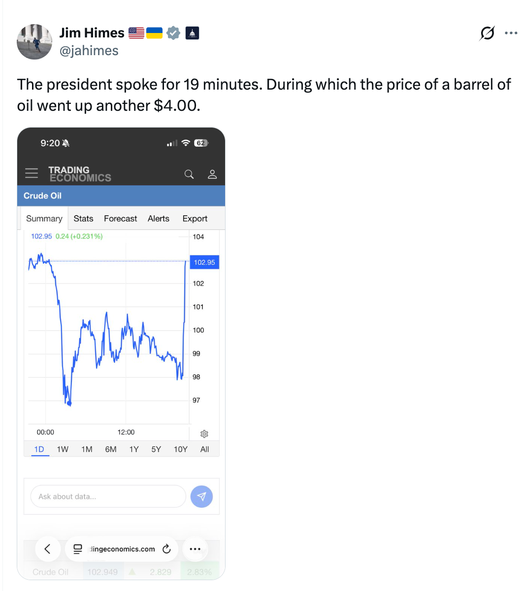 Trump: "America has plenty of gas. We have so much gas." pic.twitter.com/lv067Jgri7